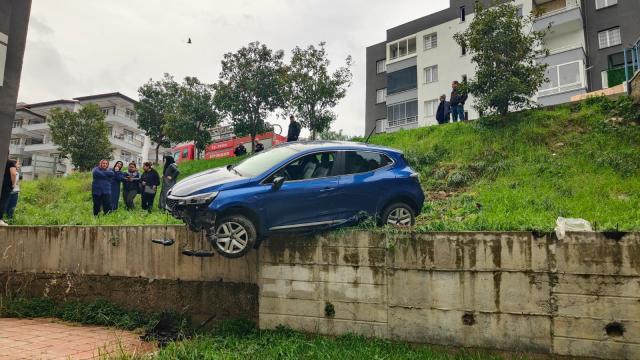Aydın'ın Kuşadası ilçesinde sürücünün fren yerine gaza basması sonucu kontrolden çıkan araç bir sitenin bahçesine yuvarlandı.