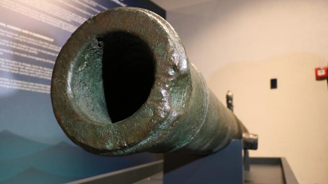 İzmir'e söküm için gelen bir gemide ele geçirilen ve Hollanda'da 17. yüzyılın ilk yarılarında yapıldığı belirlenen bronz gemi topu ve 11 gülle sergilenmeye başladı.